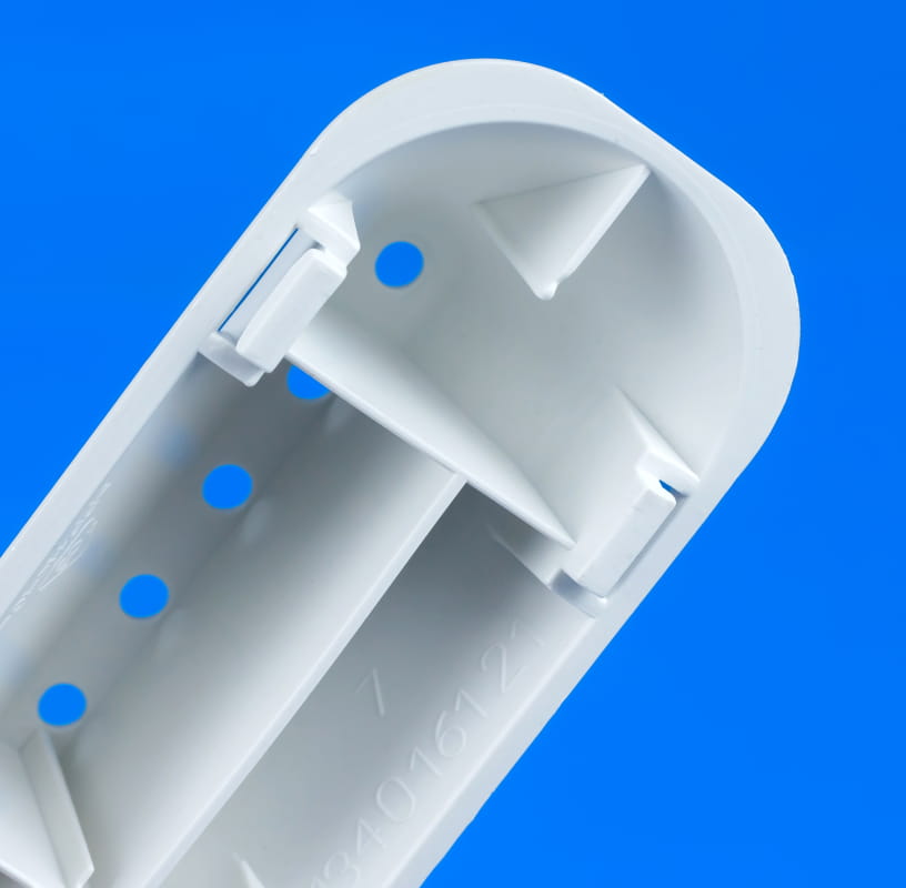 Zabierak może ulec uszkodzeniu zarówno wskutek nieprawidłowego montażu (np. nadmiernego nacisku śrubokrętem), jak i w wyniku przypadkowego kontaktu z twardymi przedmiotami pozostawionymi w odzieży. Wymiana jest prosta — wystarczy delikatnie wypiąć zużyty element, podważając go przy zaczepach, a następnie wcisnąć nowy, aż do pełnego zaskoczenia zatrzasków.